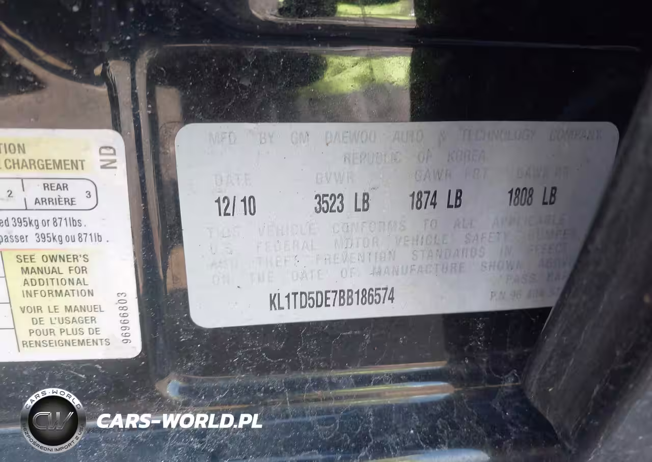 IAAI Nr: I-44702549 VIN: KL1TD5DE7BB186574 Port: Elizabeth, NJ