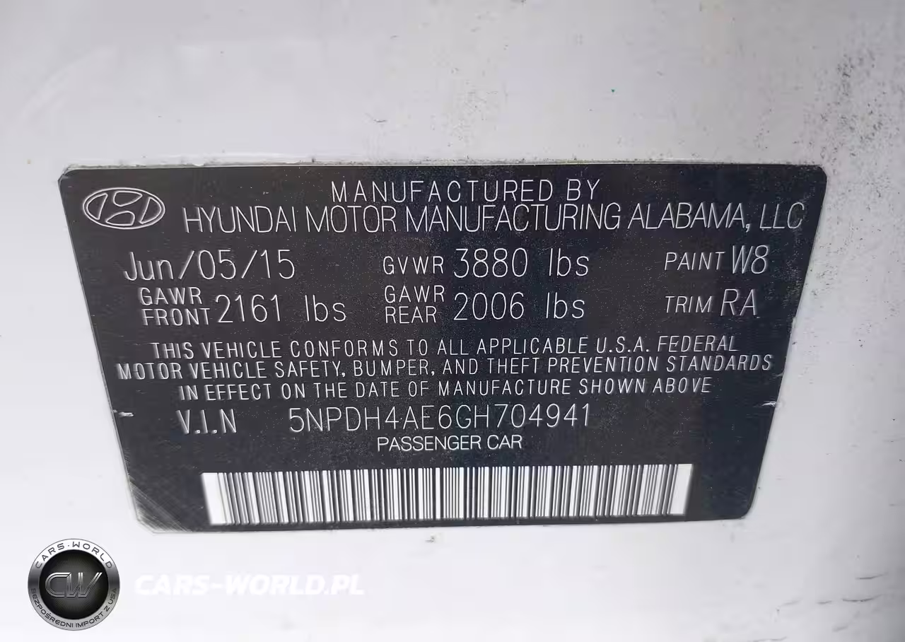 IAAI Nr: I-44703152 VIN: 5NPDH4AE6GH704941 Port: Houston, TX