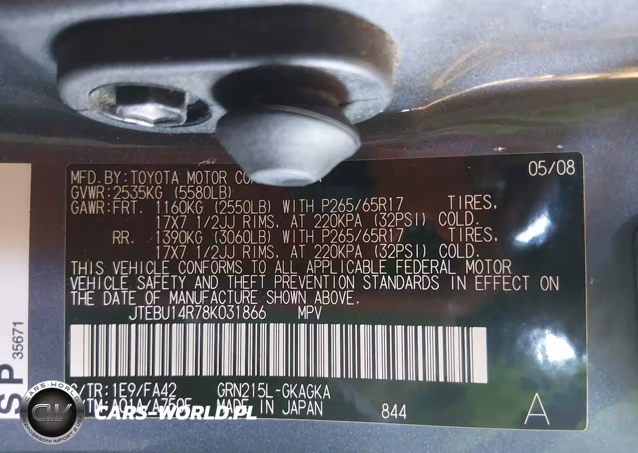 IAAI Nr: I-44703828 VIN: JTEBU14R78K031866 Port: Los Angeles, CA