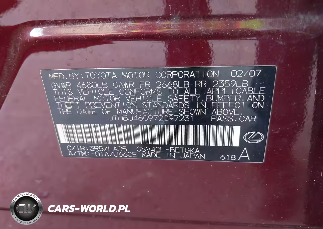IAAI Nr: I-44704489 VIN: JTHBJ46G972097231 Port: Savannah, GA