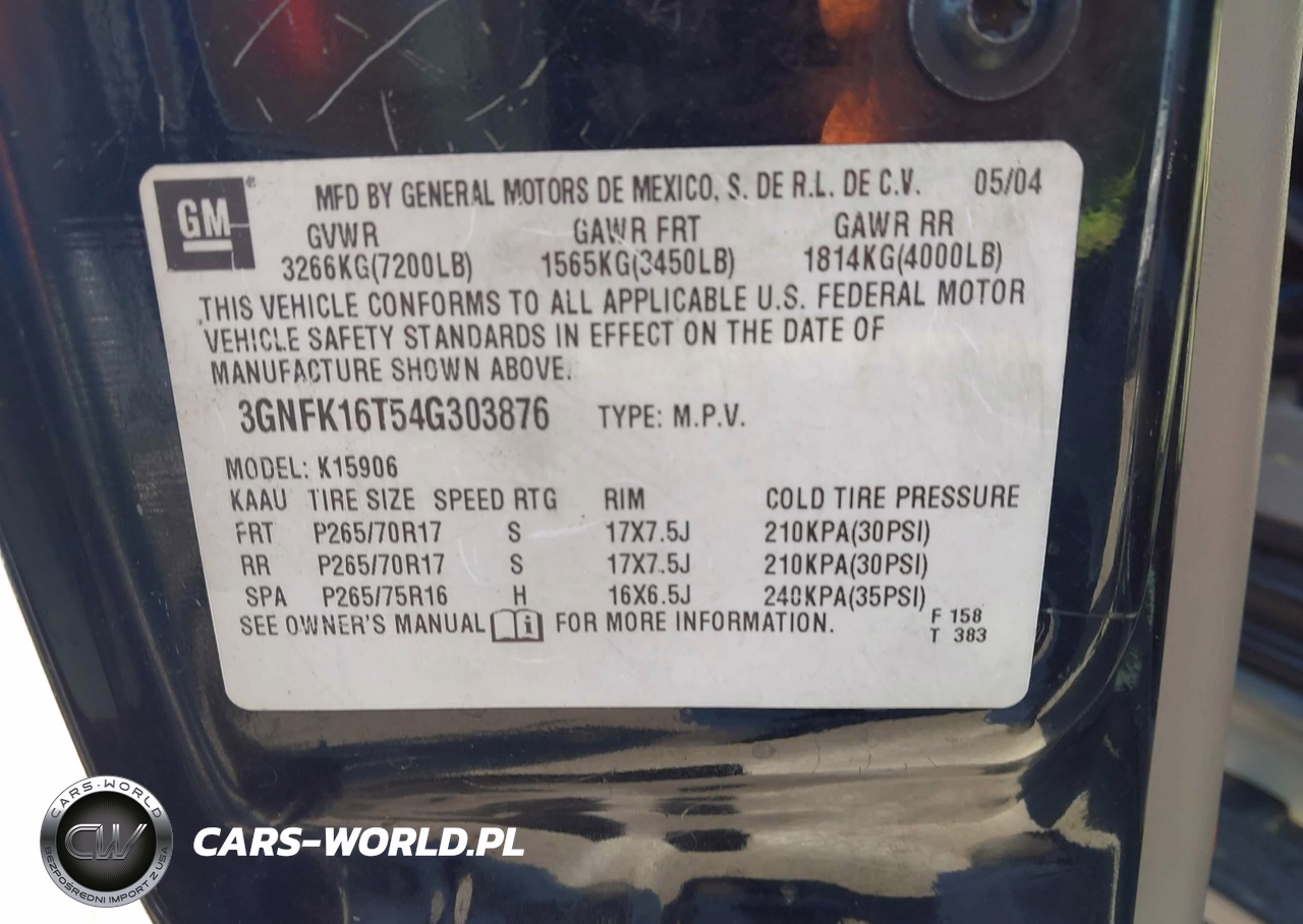IAAI Nr: I-44704864 VIN: 3GNFK16T54G303876 Port: Los Angeles, CA