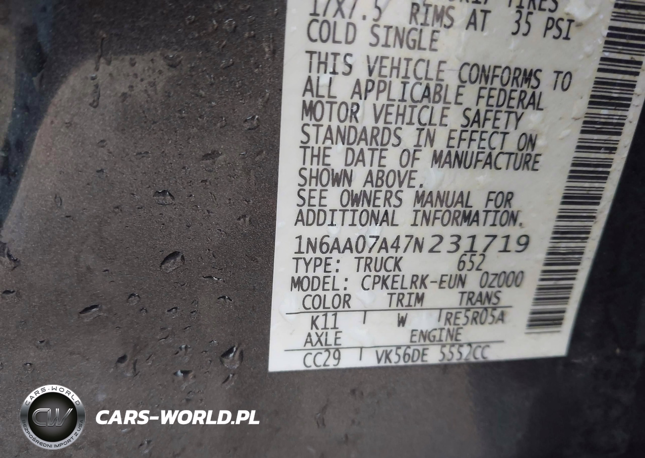 IAAI Nr: I-44704883 VIN: 1N6AA07A47N231719 Port: Houston, TX