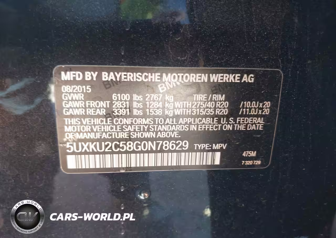 IAAI Nr: I-44704888 VIN: 5UXKU2C58G0N78629 Port: Los Angeles, CA