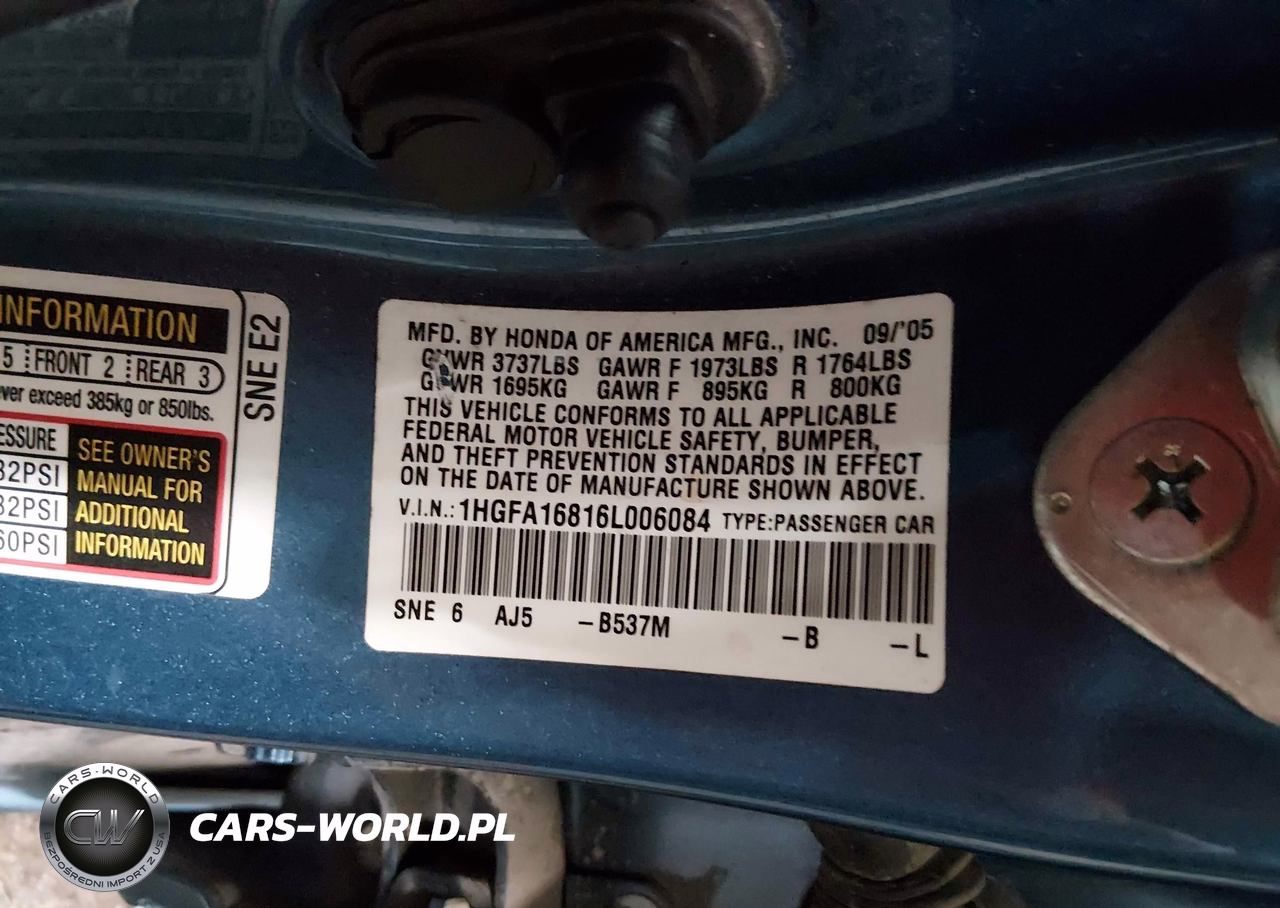 IAAI Nr: I-44705223 VIN: 1HGFA16816L006084 Port: Los Angeles, CA