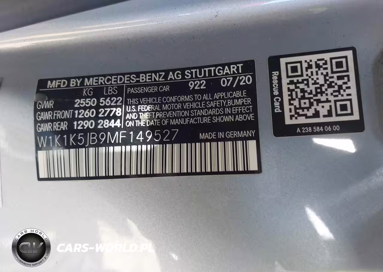 IAAI Nr: I-44705962 VIN: W1K1K5JB9MF149527 Port: Los Angeles, CA