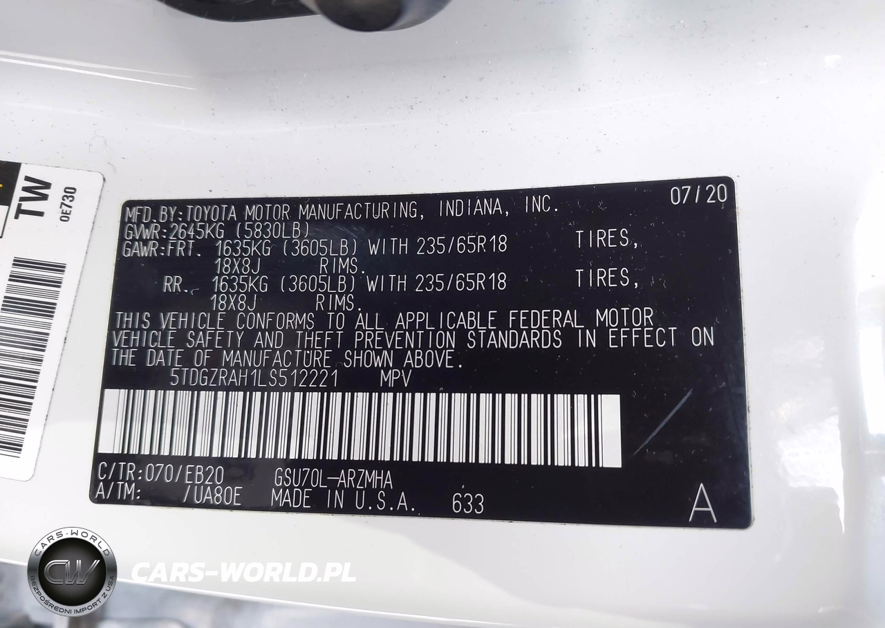 IAAI Nr: I-44706714 VIN: 5TDGZRAH1LS512221 Port: Savannah, GA