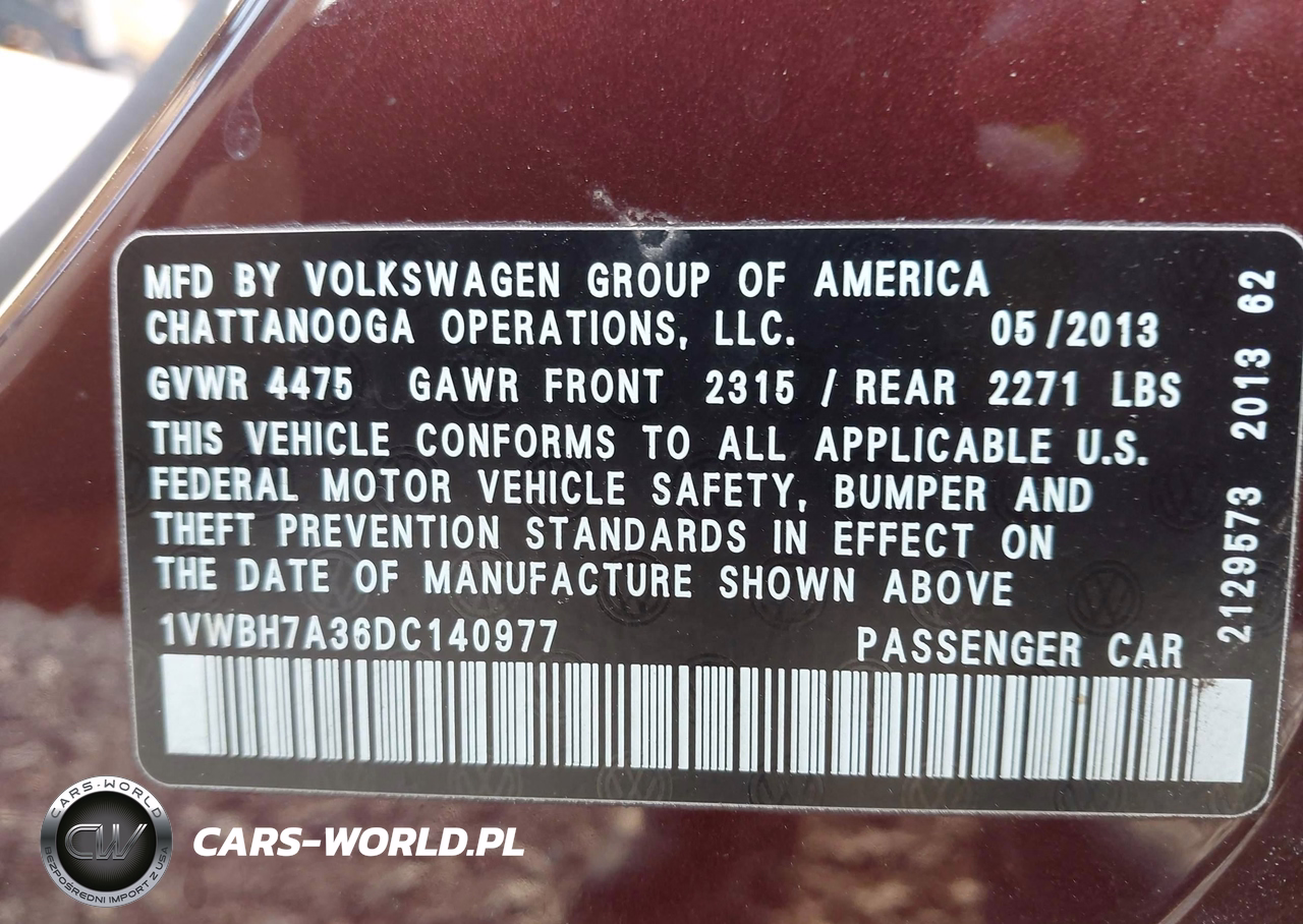 IAAI Nr: I-44706742 VIN: 1VWBH7A36DC140977 Port: Savannah, GA