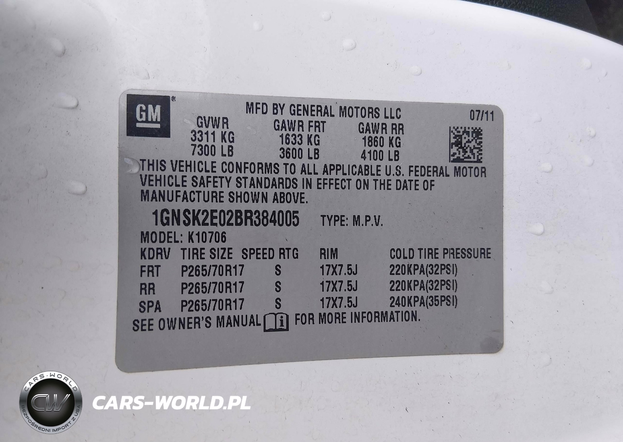 IAAI Nr: I-44706871 VIN: 1GNSK2E02BR384005 Port: Savannah, GA