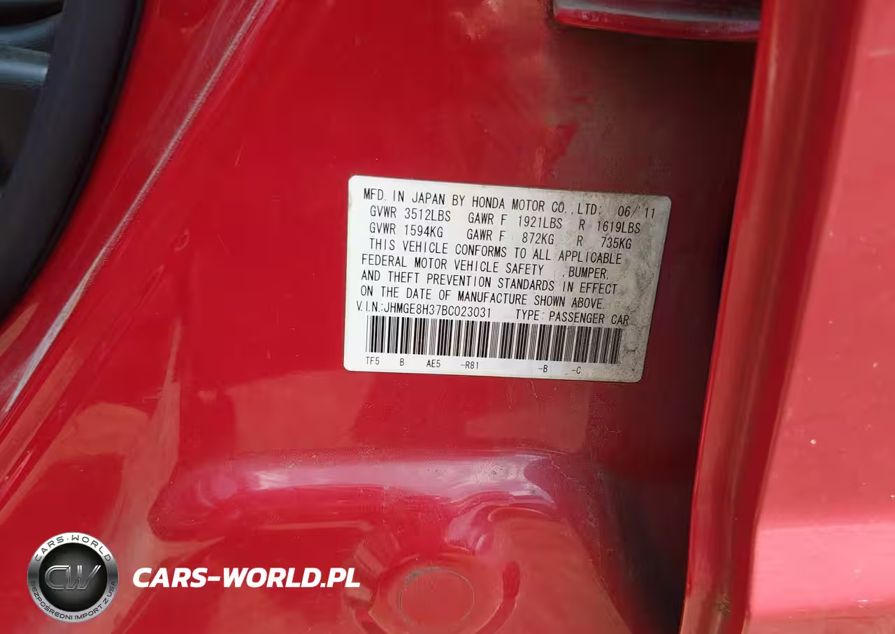 IAAI Nr: I-44707287 VIN: JHMGE8H37BC023031 Port: Savannah, GA