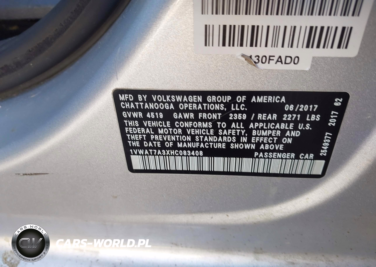 IAAI Nr: I-44707652 VIN: 1VWAT7A3XHC083408 Port: Los Angeles, CA