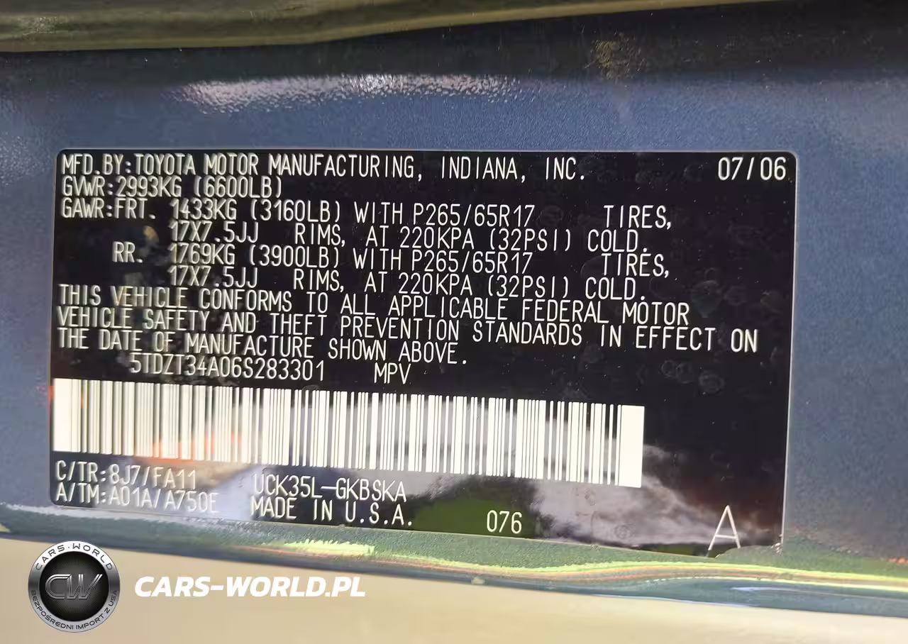 IAAI Nr: I-44707988 VIN: 5TDZT34A06S283301 Port: Los Angeles, CA