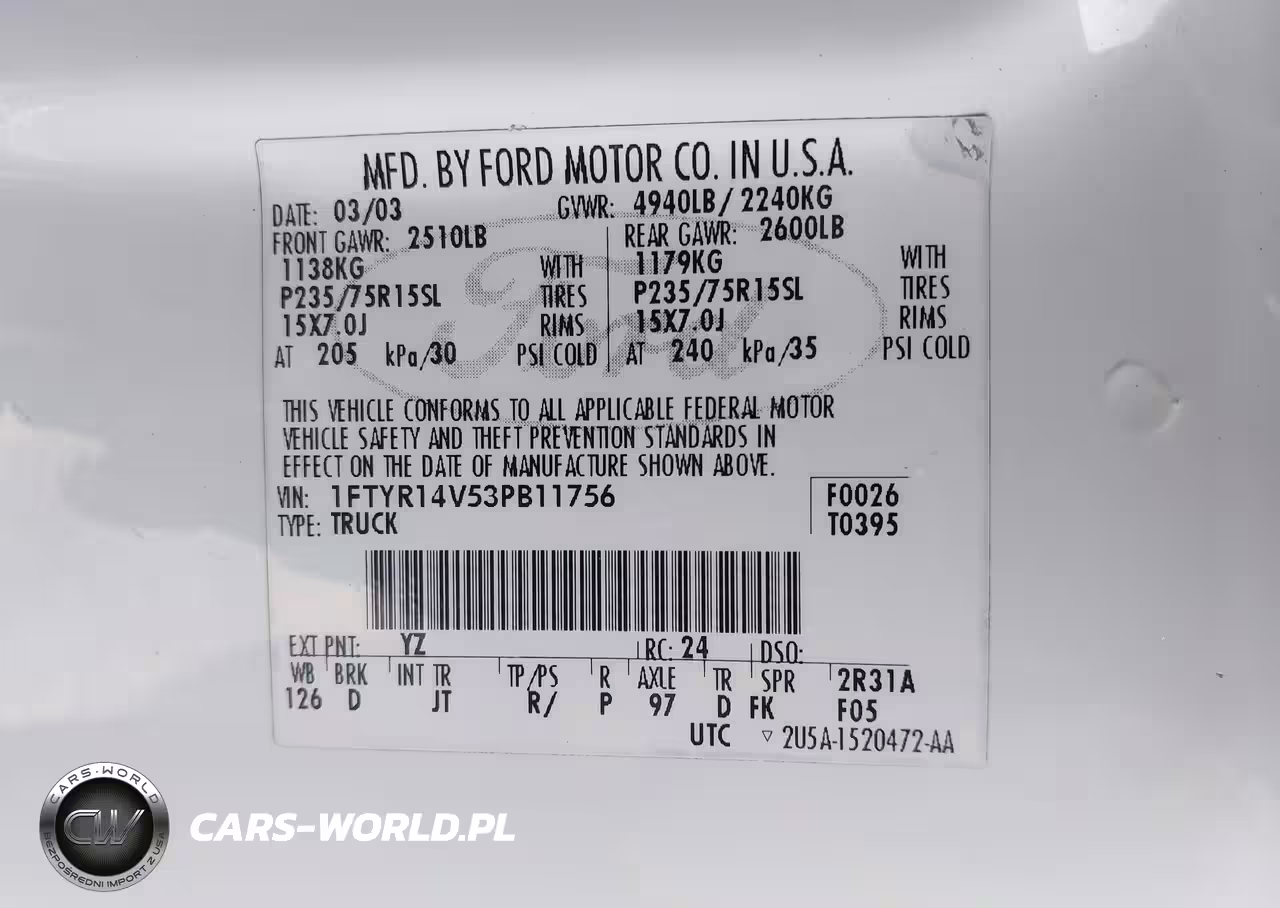 IAAI Nr: I-44707992 VIN: 1FTYR14V53PB11756 Port: Los Angeles, CA