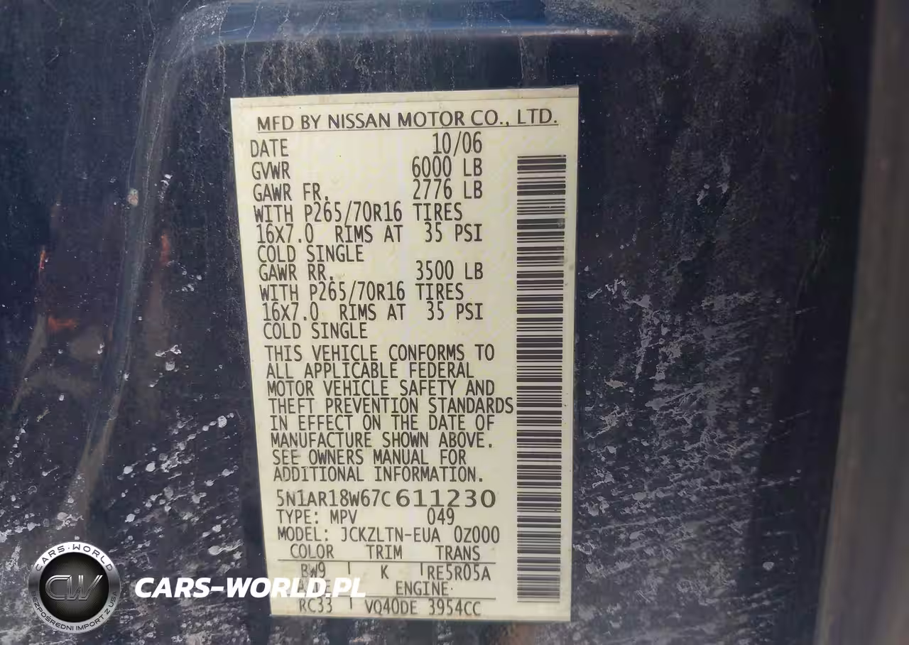 IAAI Nr: I-44708343 VIN: 5N1AR18W67C611230 Port: Elizabeth, NJ