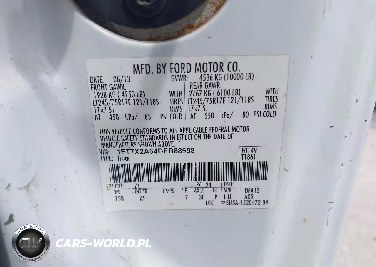 IAAI Nr: I-44708443 VIN: 1FT7X2A64DEB88698 Port: Savannah, GA