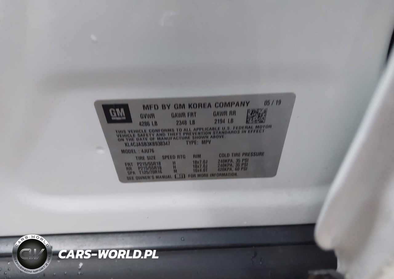IAAI Nr: I-44708489 VIN: KL4CJASB3KB938347 Port: Elizabeth, NJ