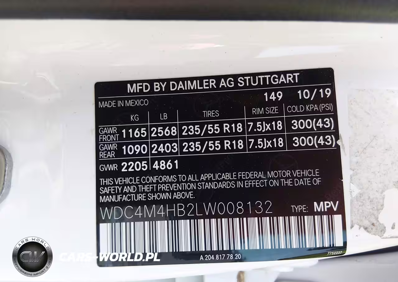 IAAI Nr: I-44708760 VIN: WDC4M4HB2LW008132 Port: Savannah, GA