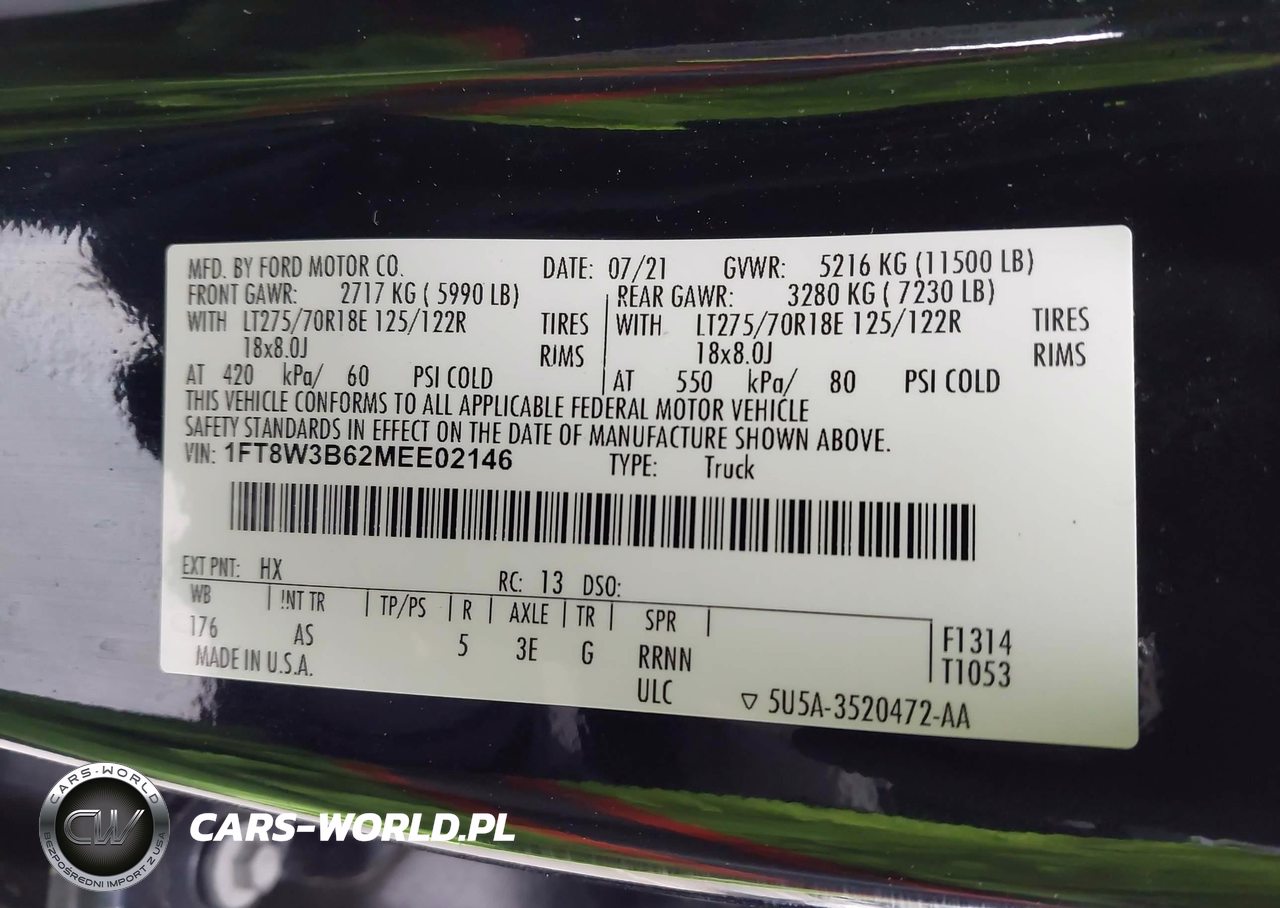 IAAI Nr: I-44710333 VIN: 1FT8W3B62MEE02146 Port: Elizabeth, NJ
