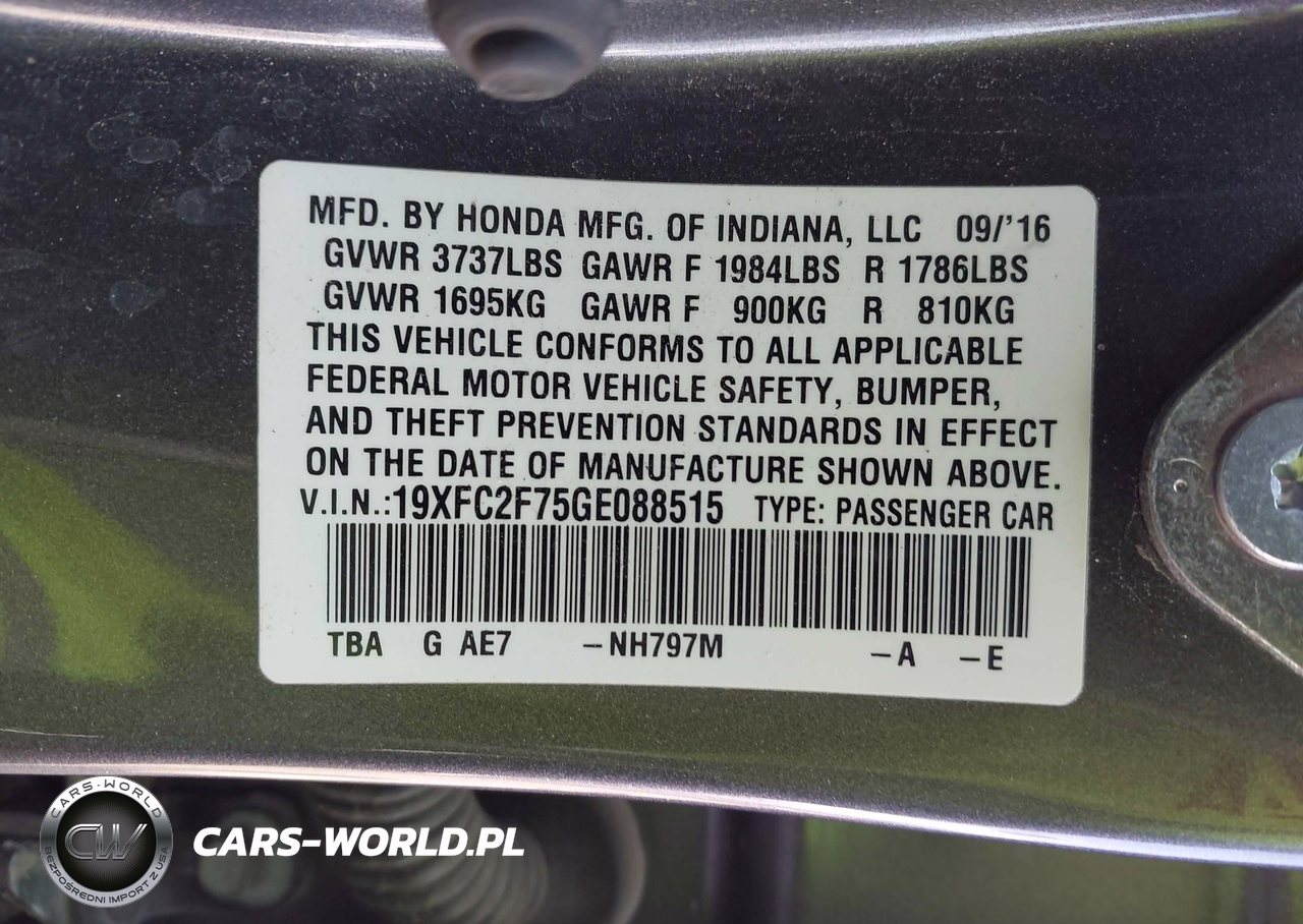 IAAI Nr: I-44710560 VIN: 19XFC2F75GE088515 Port: Houston, TX