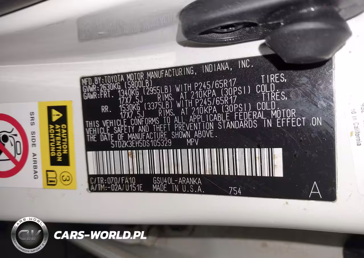 IAAI Nr: I-44711118 VIN: 5TDZK3EH5DS105329 Port: Los Angeles, CA