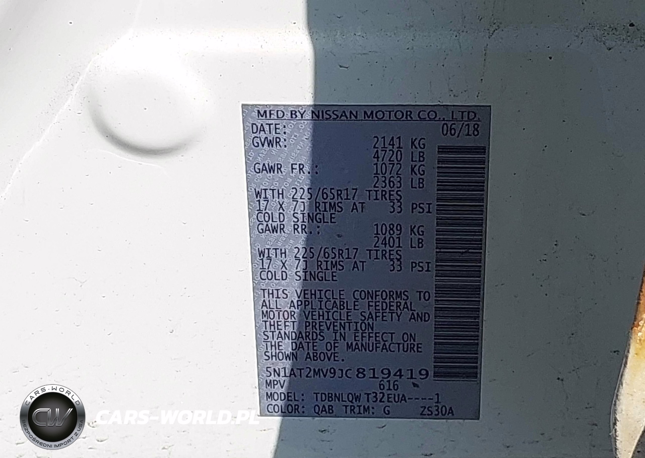 IAAI Nr: I-44711331 VIN: 5N1AT2MV9JC819419 Port: Elizabeth, NJ