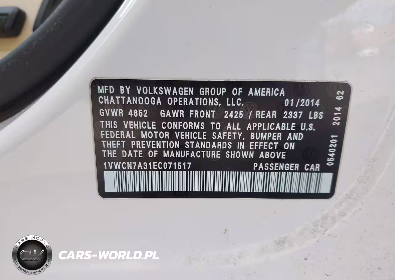 IAAI Nr: I-44711424 VIN: 1VWCN7A31EC071517 Port: Elizabeth, NJ
