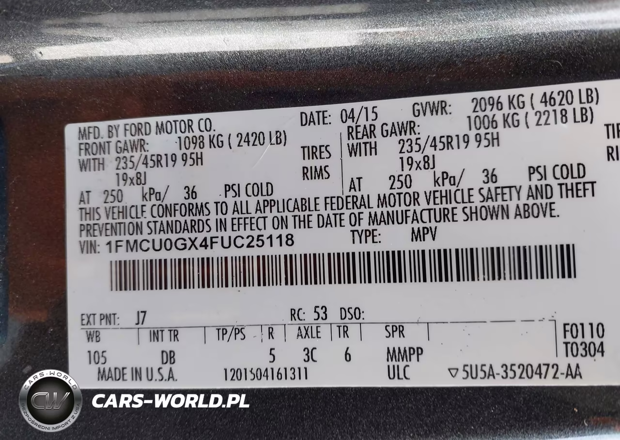 IAAI Nr: I-44711721 VIN: 1FMCU0GX4FUC25118 Port: Houston, TX