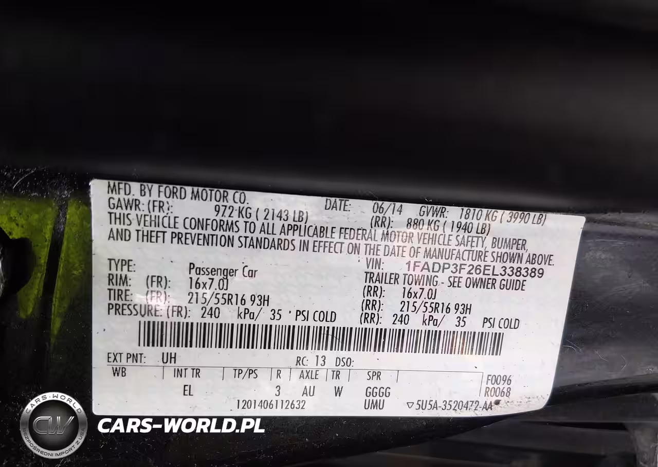 IAAI Nr: I-44711754 VIN: 1FADP3F26EL338389 Port: Elizabeth, NJ