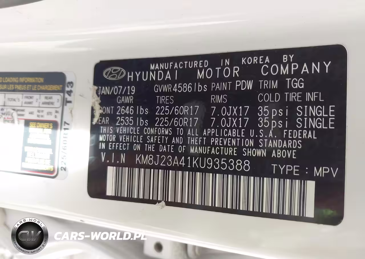 IAAI Nr: I-44712424 VIN: KM8J23A41KU935388 Port: Indianapolis, IN