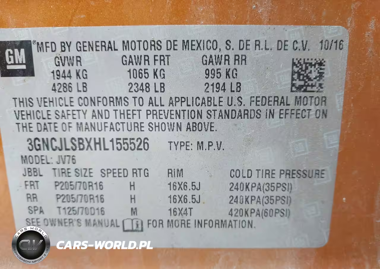IAAI Nr: I-44712582 VIN: 3GNCJLSBXHL155526 Port: Indianapolis, IN