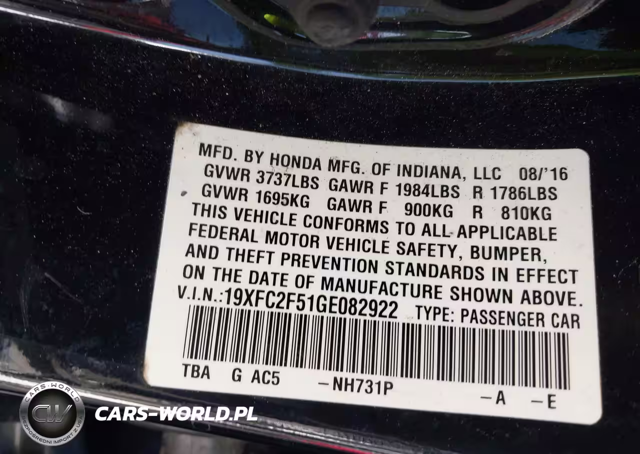 IAAI Nr: I-44712979 VIN: 19XFC2F51GE082922 Port: Savannah, GA