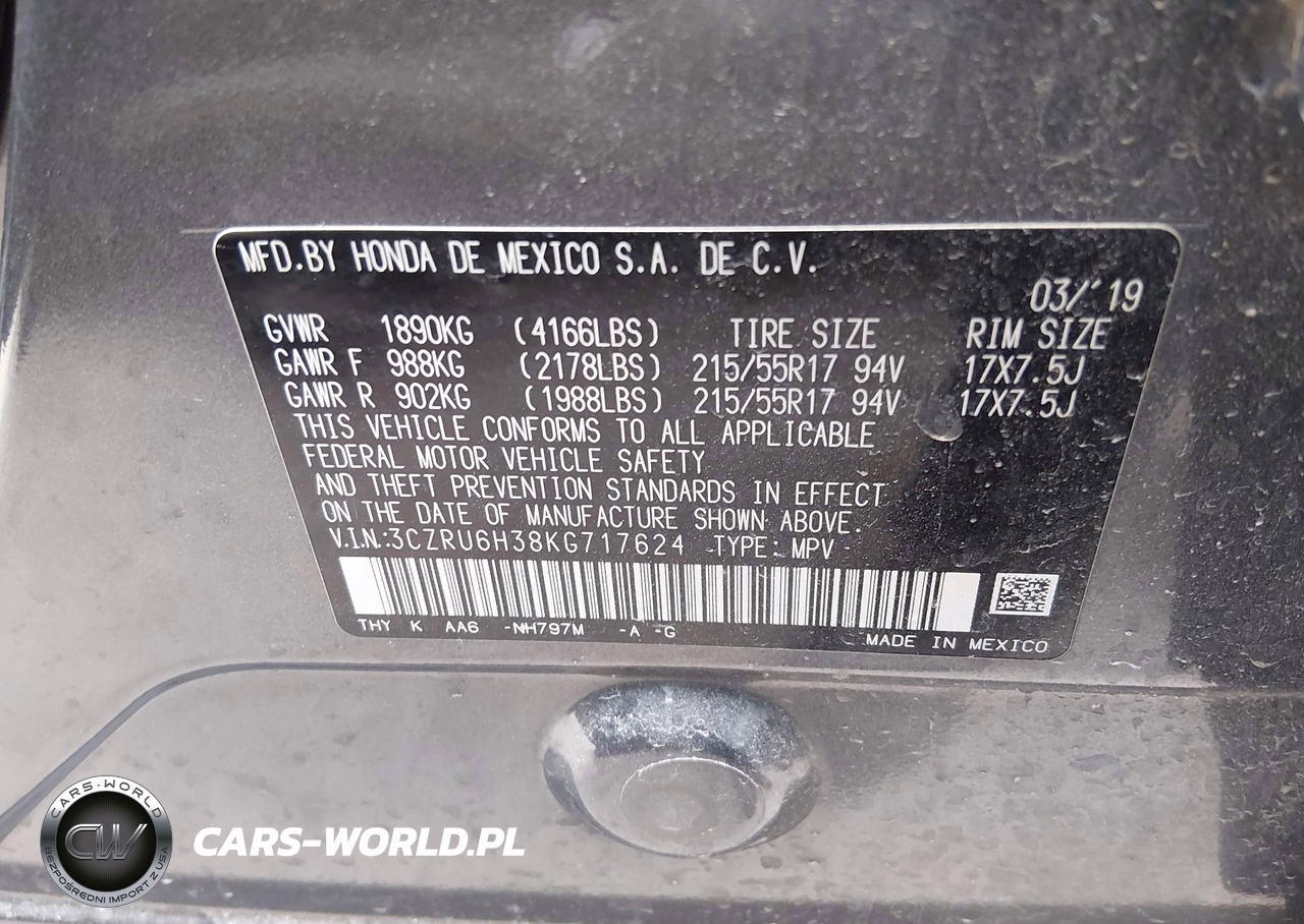 IAAI Nr: I-44713166 VIN: 3CZRU6H38KG717624 Port: Indianapolis, IN