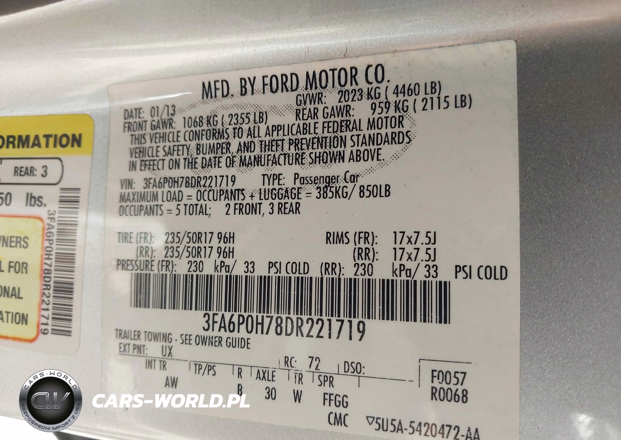 IAAI Nr: I-44713342 VIN: 3FA6P0H78DR221719 Port: Savannah, GA