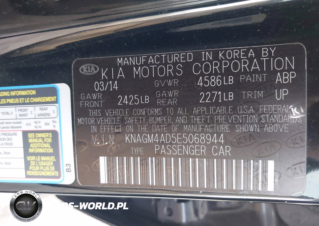 IAAI Nr: I-44713377 VIN: KNAGM4AD5E5068944 Port: Elizabeth, NJ