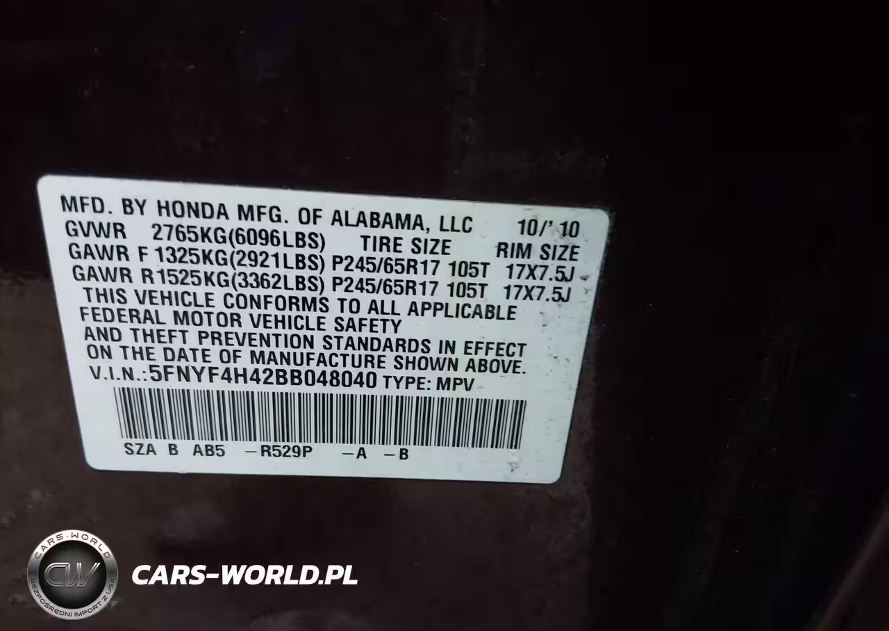 IAAI Nr: I-44714302 VIN: 5FNYF4H42BB048040 Port: Elizabeth, NJ
