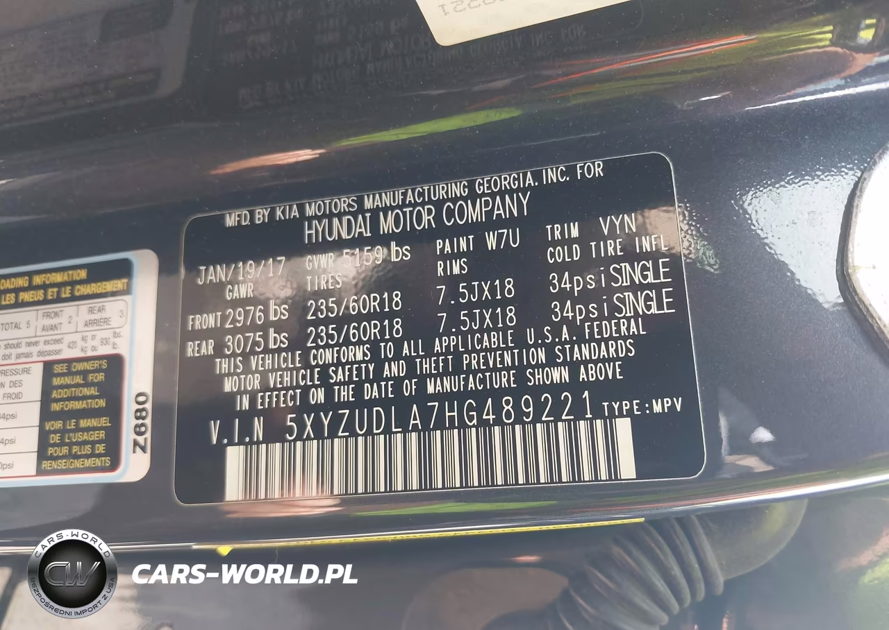 IAAI Nr: I-44714389 VIN: 5XYZUDLA7HG489221 Port: Savannah, GA
