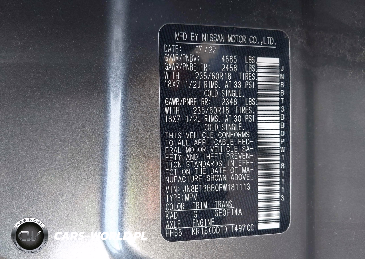 IAAI Nr: I-44714659 VIN: JN8BT3BB0PW181113 Port: Elizabeth, NJ