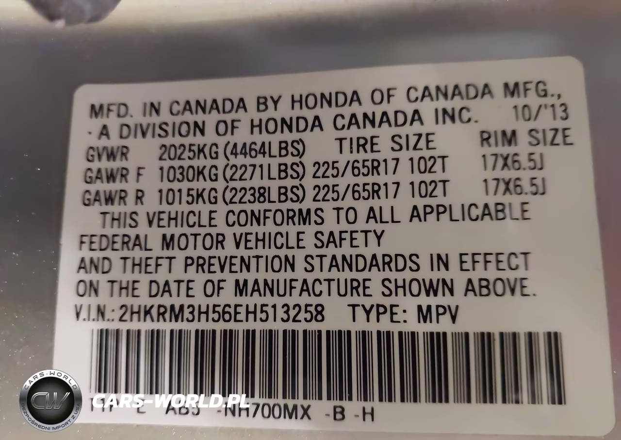 IAAI Nr: I-44715371 VIN: 2HKRM3H56EH513258 Port: Indianapolis, IN