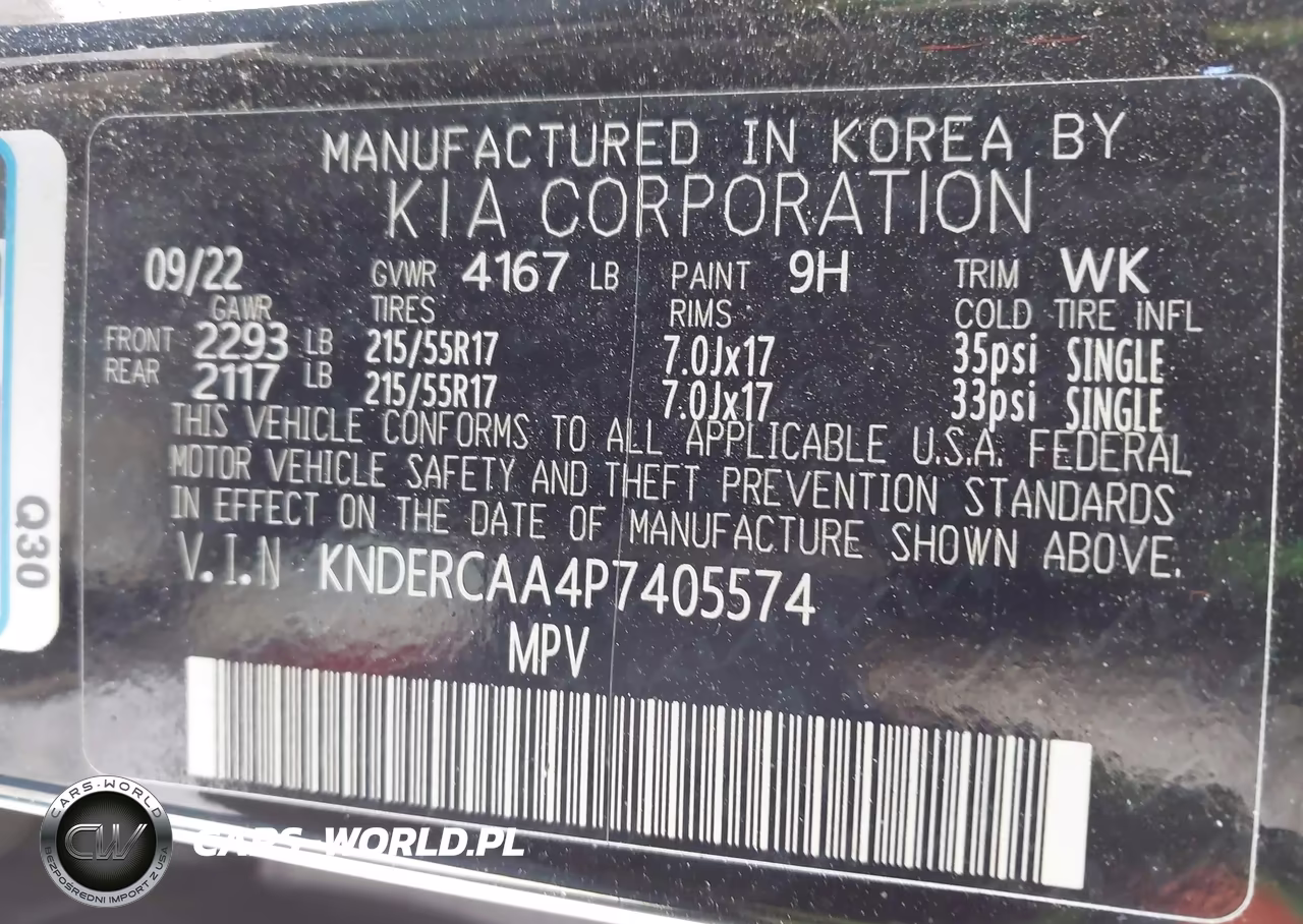 IAAI Nr: I-44715401 VIN: KNDERCAA4P7405574 Port: Indianapolis, IN