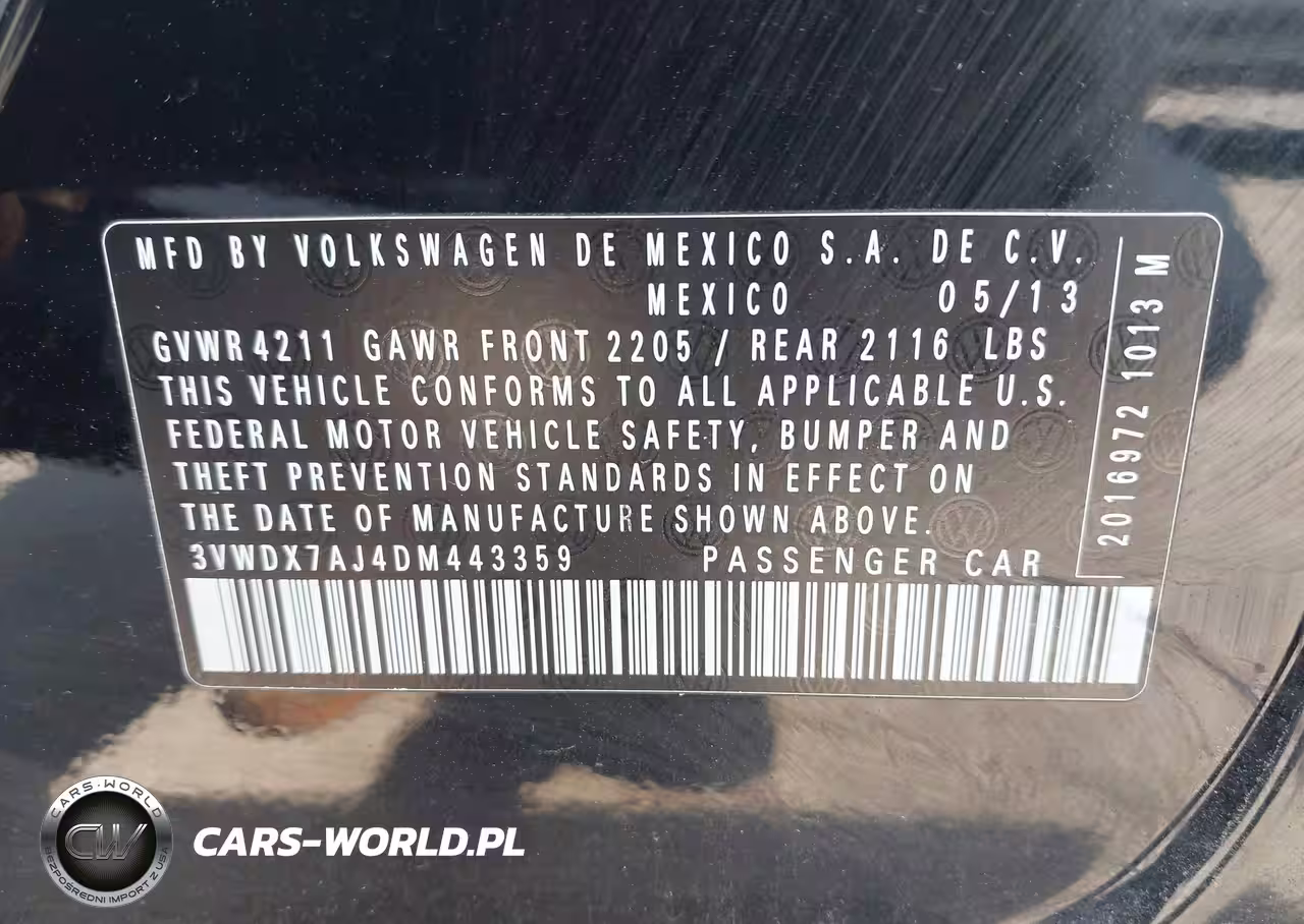 IAAI Nr: I-44716301 VIN: 3VWDX7AJ4DM443359 Port: Savannah, GA