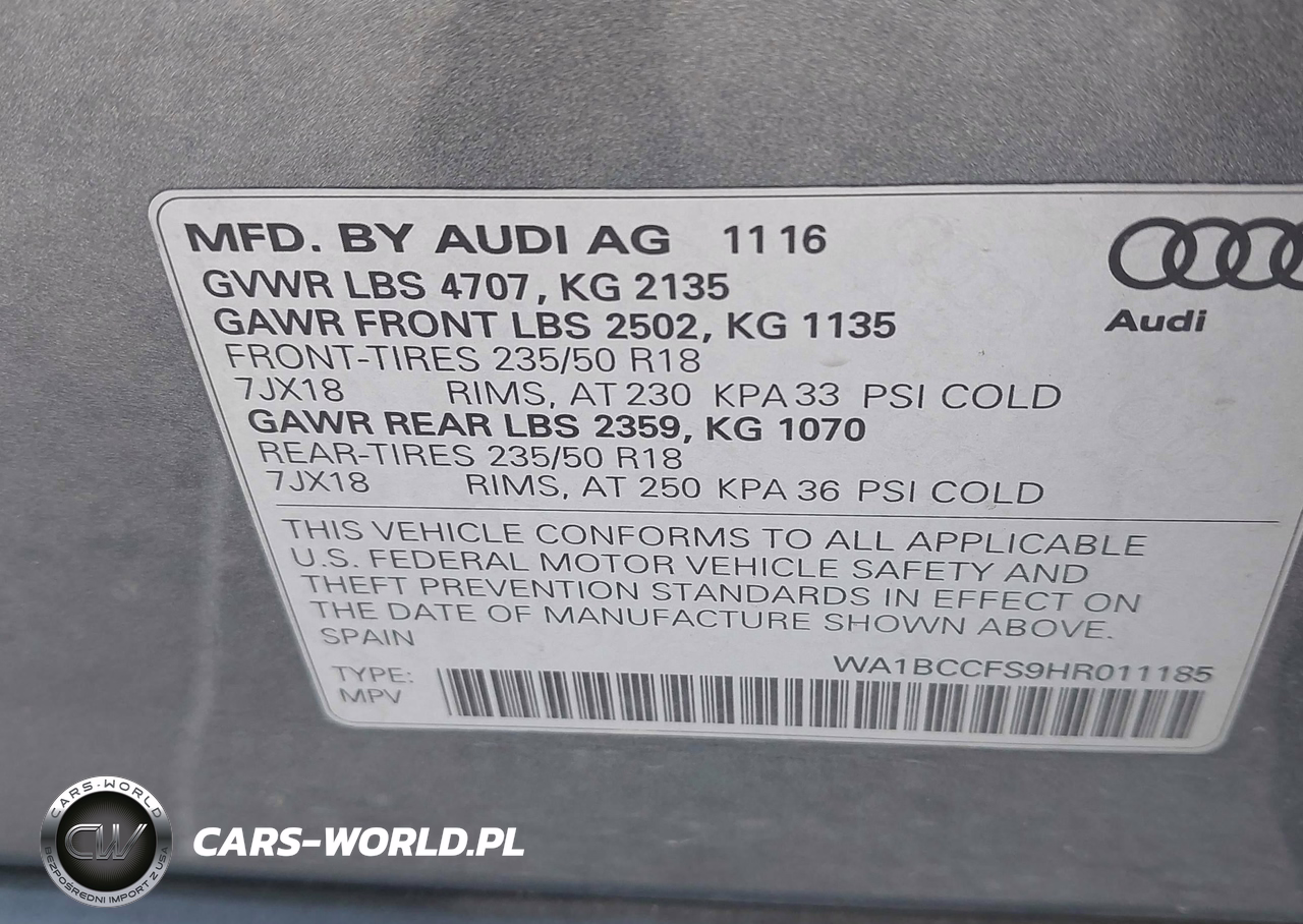 IAAI Nr: I-44716447 VIN: WA1BCCFS9HR011185 Port: Houston, TX