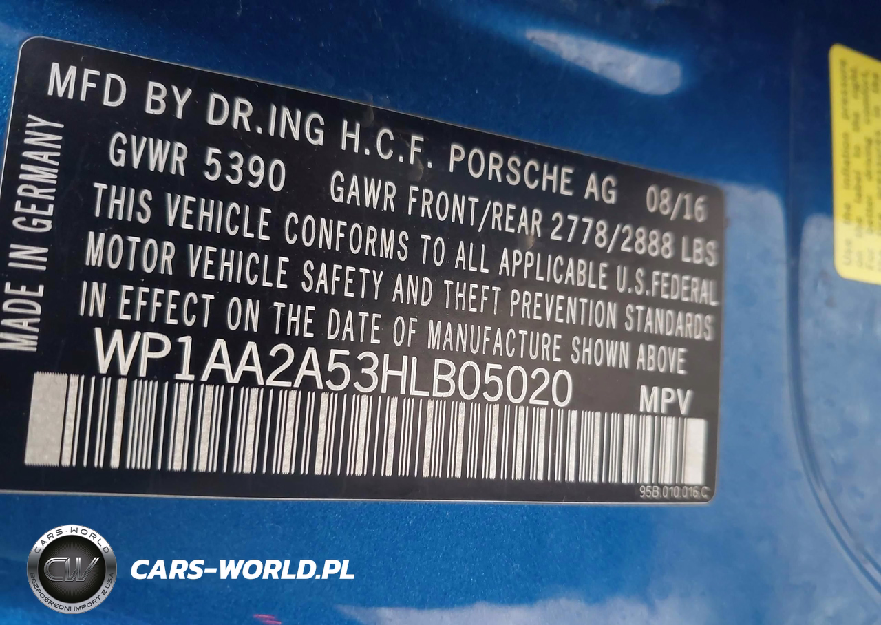 IAAI Nr: I-44716646 VIN: WP1AA2A53HLB05020 Port: Indianapolis, IN