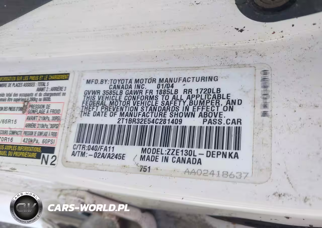 Główne zdjęcie 2004 Toyota Corolla Le