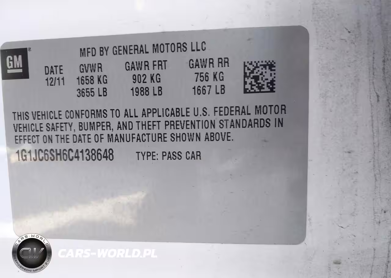 IAAI Nr: I-44717356 VIN: 1G1JC6SH6C4138648 Port: Indianapolis, IN