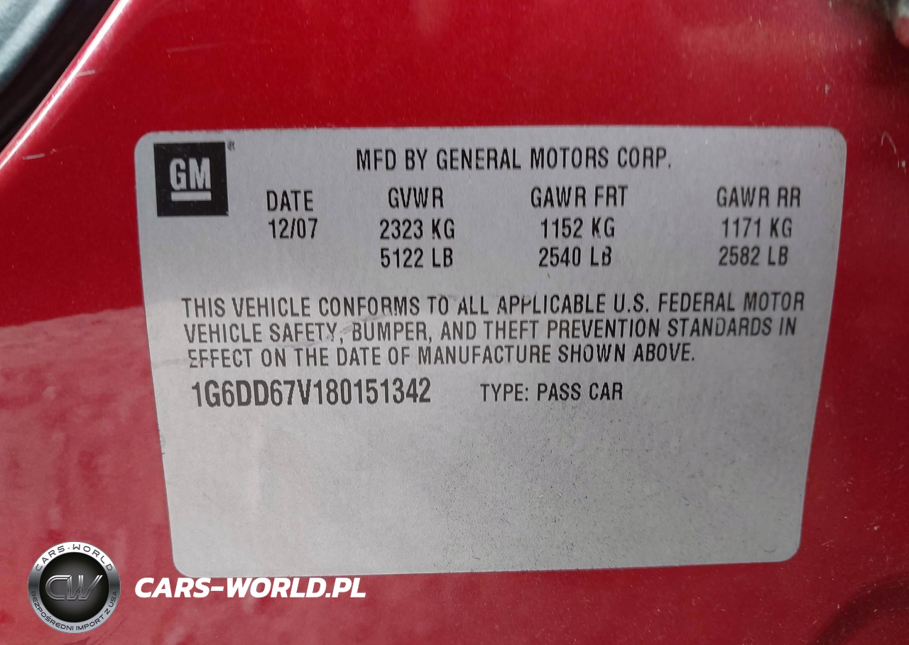 IAAI Nr: I-44718007 VIN: 1G6DD67V180151342 Port: Elizabeth, NJ