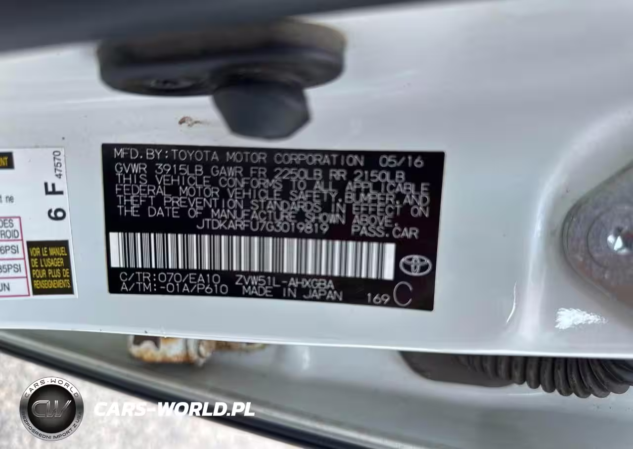 IAAI Nr: I-44718469 VIN: JTDKARFU7G3019819 Port: Elizabeth, NJ