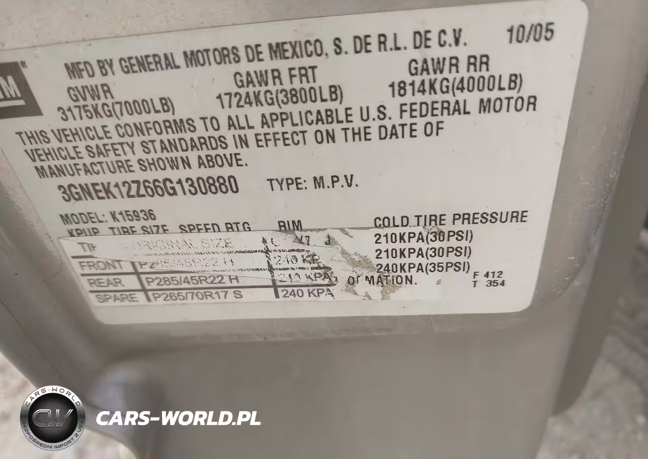 IAAI Nr: I-44718625 VIN: 3GNEK12Z66G130880 Port: Indianapolis, IN
