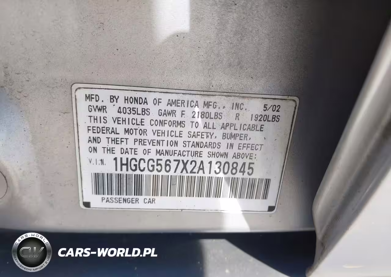 IAAI Nr: I-44718823 VIN: 1HGCG567X2A130845 Port: Elizabeth, NJ