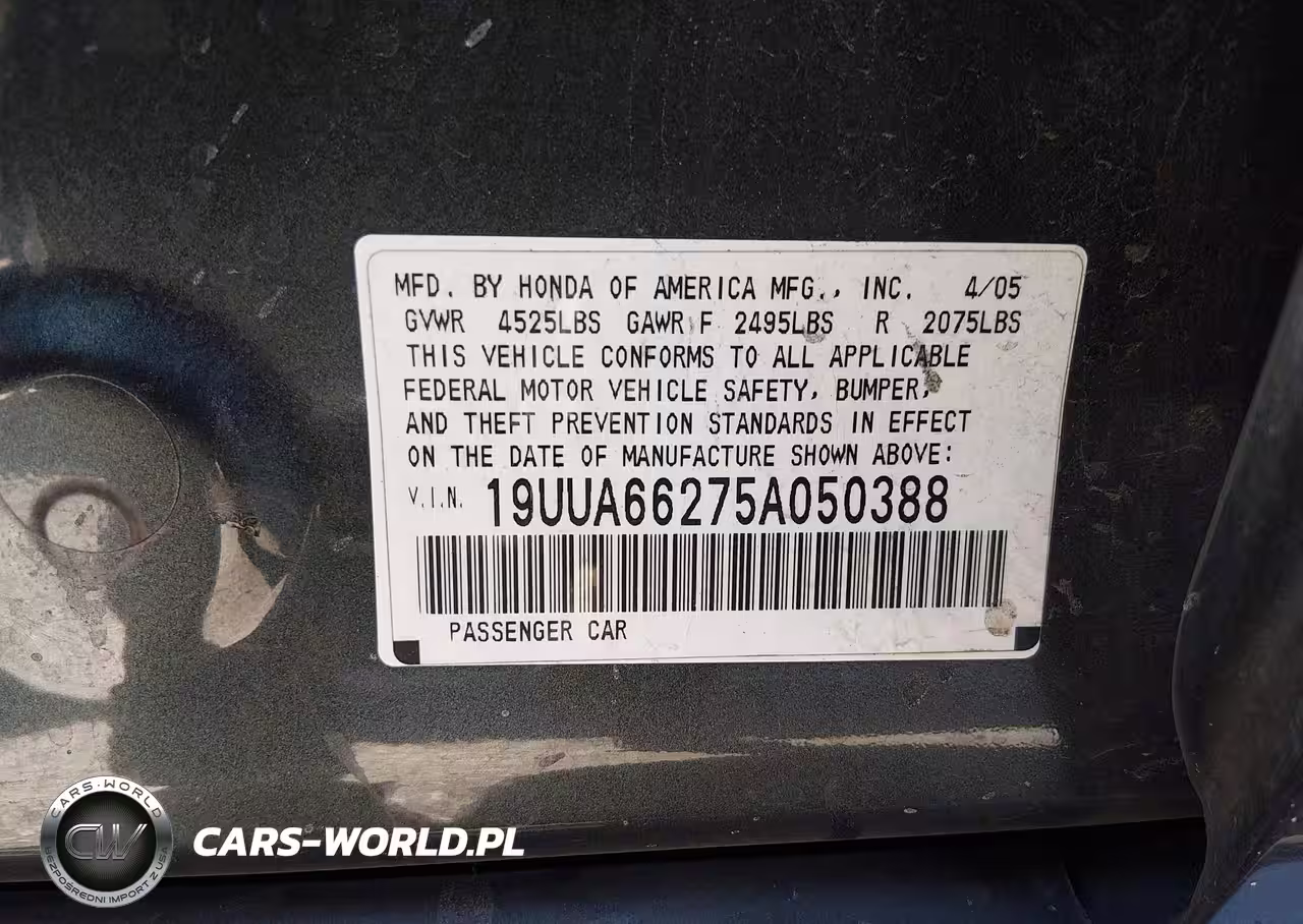 IAAI Nr: I-44719198 VIN: 19UUA66275A050388 Port: Los Angeles, CA