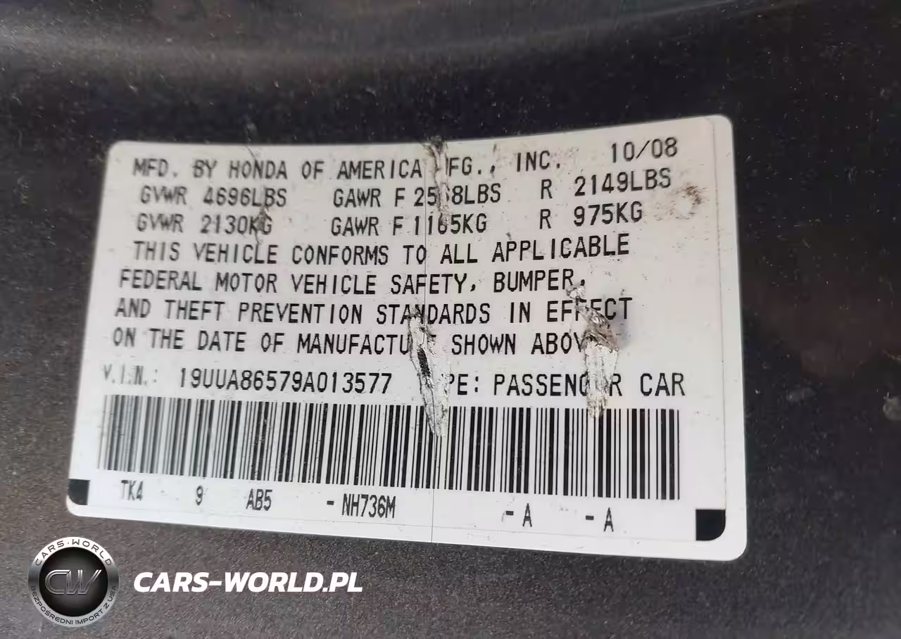 IAAI Nr: I-44719255 VIN: 19UUA86579A013577 Port: Elizabeth, NJ