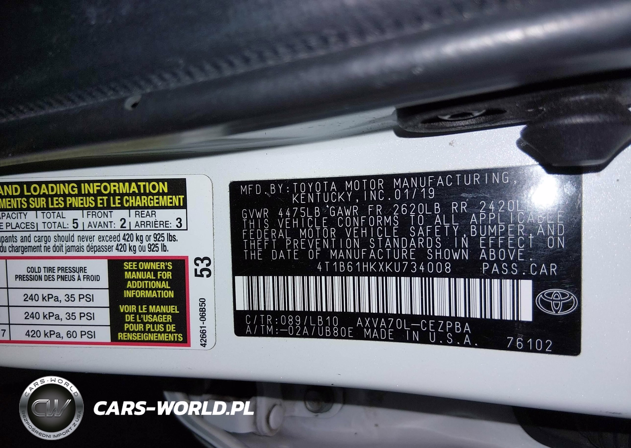 IAAI Nr: I-44719536 VIN: 4T1B61HKXKU734008 Port: Los Angeles, CA
